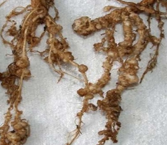 Plant-parasitic nematodes (Meloidogyne spp.i.e., incognita, javanica) are the most common in India, and infestation due to these parasitic nematodes is very common in brinjal. The root-knot nematode causes more harmful damage to brinjal seedlings than to older plants. These nematode infestations cause root galls in the roots of the brinjal plant. The infected plant becomes stunted, and the leaves show chlorotic symptoms. The infestation of these nematodes greatly reduces the yield of the crop.