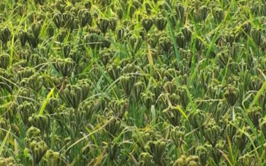 It may cause severe damage in certain areas. Plants are stunted and leaves may arise close together in a bunch.
