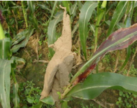 Termite is also an important pest problem of maize crops in many areas. For control of termites, apply fipronil granules @ 20 kg ha-1 accomplished by light irrigation. If the termite incidence occurs in patches, then spot application of fipronil @ 2-3 granules/plant should be done. Clean cultivation of the maize crops delays termite attacks.