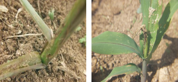 Areas under the high temperatures with high relative humidity are more prone to the incidence of maize diseases of Pythium and bacterial stalk rot. In Pythium stalk rot, the diseased area of the stalk is brown, water-soaked, soft, and collapsed usually confined to a single internode just above the soil surface.