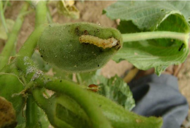 The larva bores into the tender terminal shoot in the vegetative stage and flower buds, flowers, and young fruits in the fruit formation stage. The damaged shoots droop, wither and dry up. The infested fruits of the okra crop show a deformed shape and become unfit for human consumption. The boreholes are plugged with excreta, which are not desirable at all