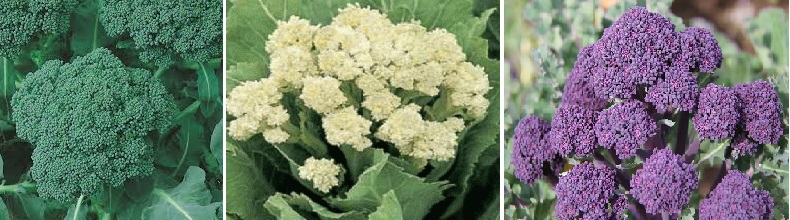 Sprouting broccoli has green, white, and purple-colored varieties, but only green types are generally cultivated.